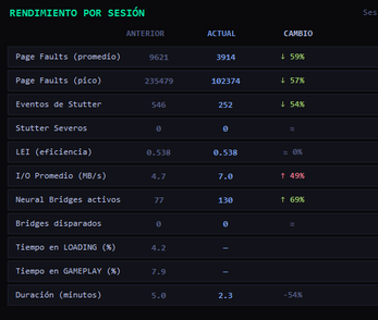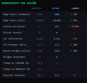 Session comparison The Performance tab shows your previous session vs. current session side by side. Green arrows mean improvement, red means regression. You can verify with your own eyes that Sentinel is making a difference — no guesswork, no placebo.