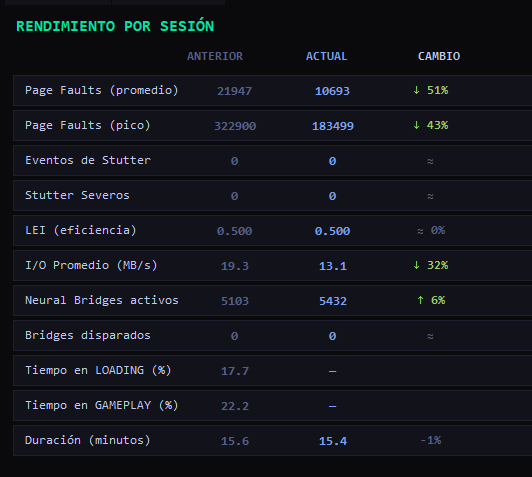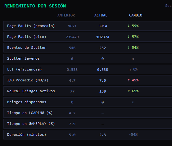 Session 5+: The engine knows your game by heart. It predicts zone transitions, asset loading, and streaming patterns seconds before they happen. Your game runs at its smoothest.