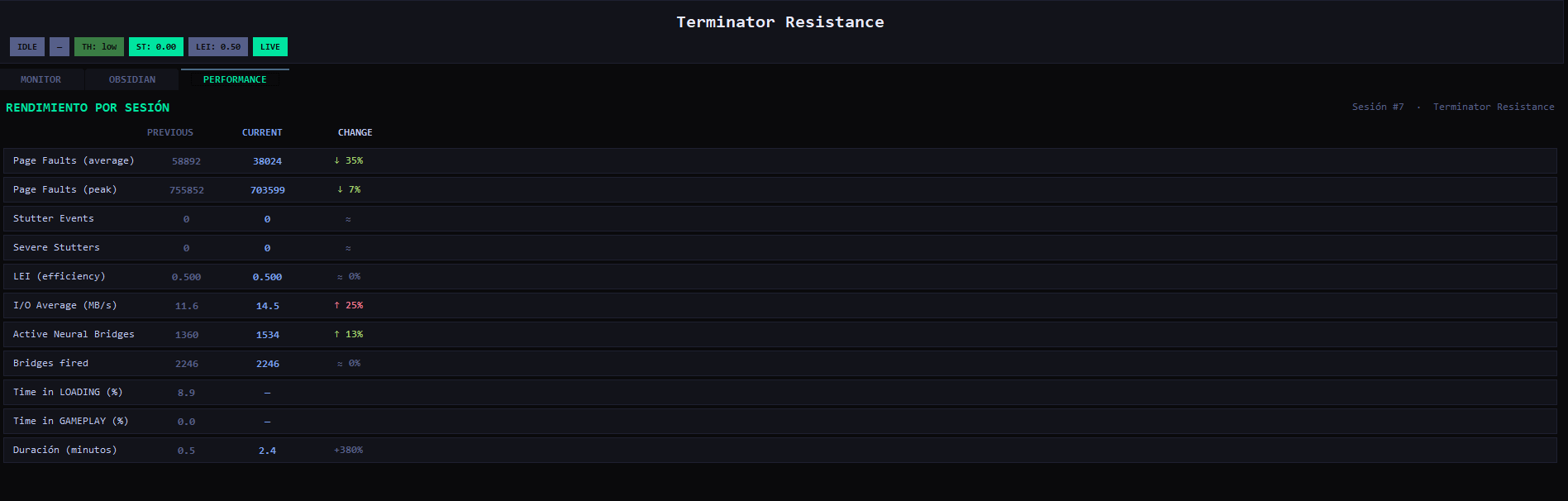 Real-time dashboard Three tabs to see exactly what's happening: Monitor shows live system stats. Obsidian shows the optimization engine at work with visual indicators. Performance shows session-over-session comparison — you see your improvement in real numbers.